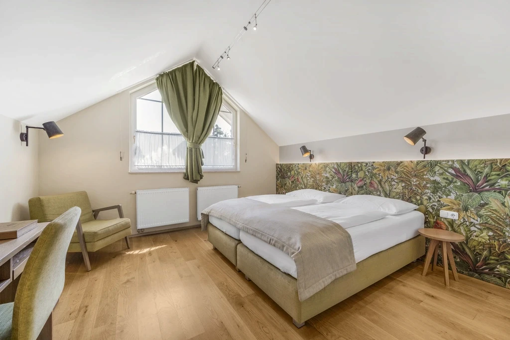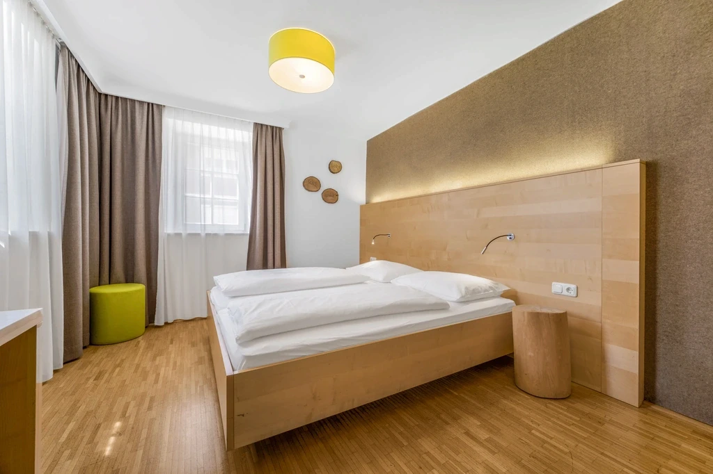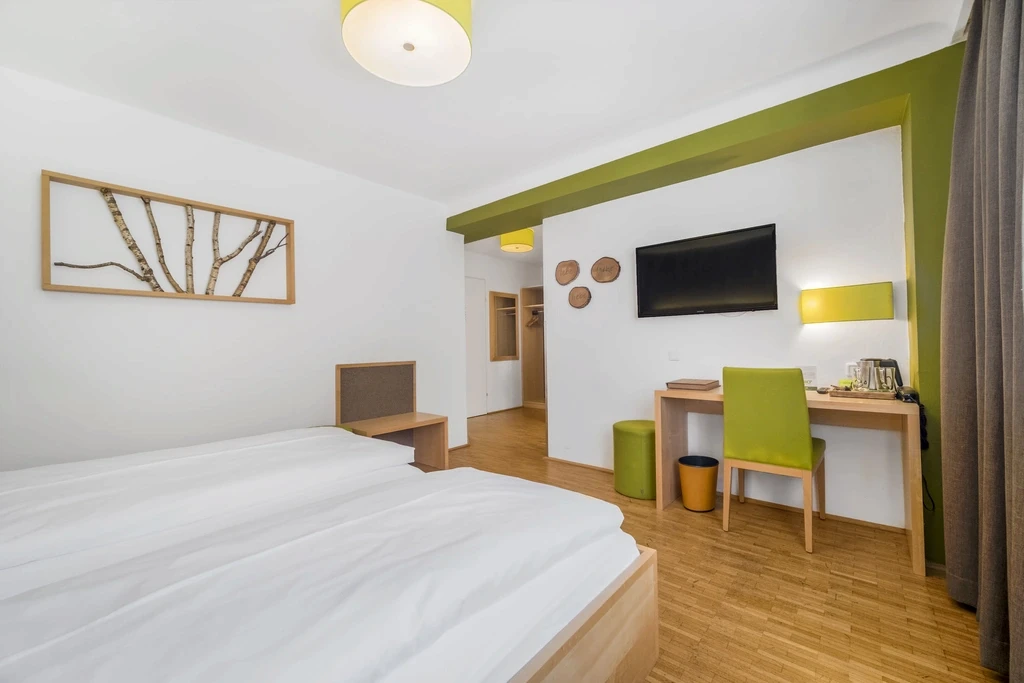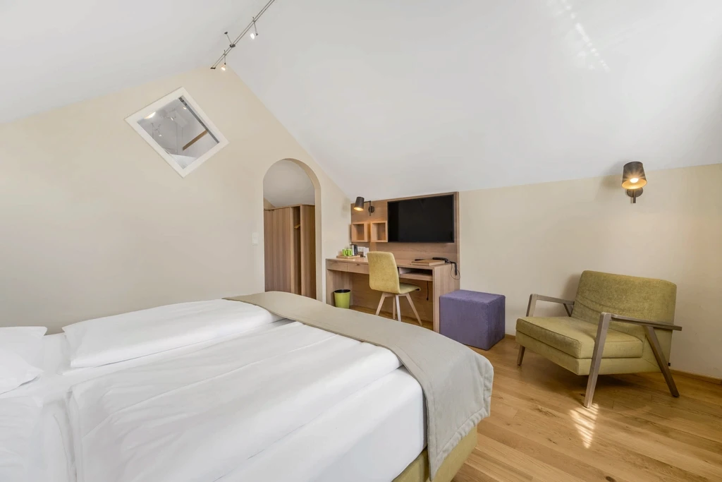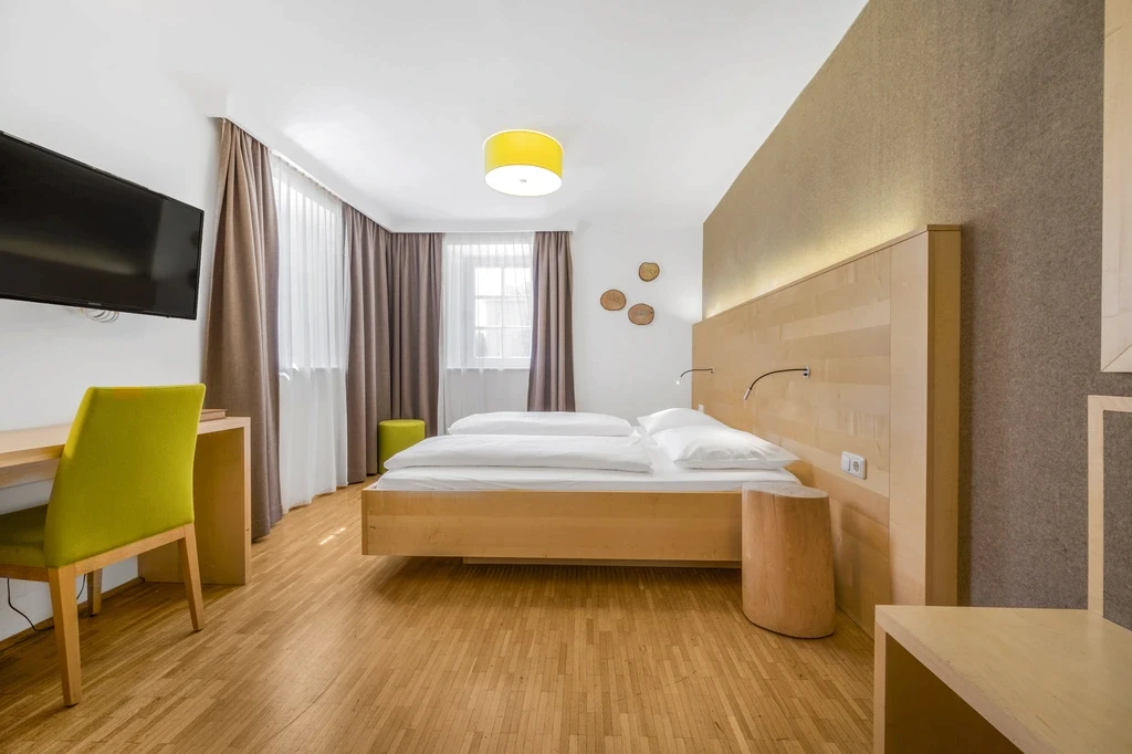 Ruhig, modern, geradlinig, schönes Farbspiel. Stilvolles Wohnen und genüssliches Schlafen. Ab 14 Uhr können Sie das Zimmer beziehen. Ein Early Check-in ist bei Verfügbarkeit kostenlos möglich. Am Morgen genießen Sie unser reichhaltiges, REGIONALES BIO-FRÜHSTÜCK vom Büffet. Ihr Auto können Sie kostenlos am hoteleigenen Parkplatz abstellen und Ihr Elektroauto mit Ökostrom gegen Aufpreis aufladen.