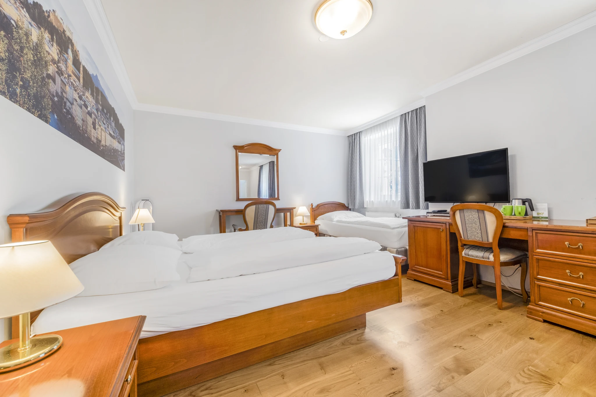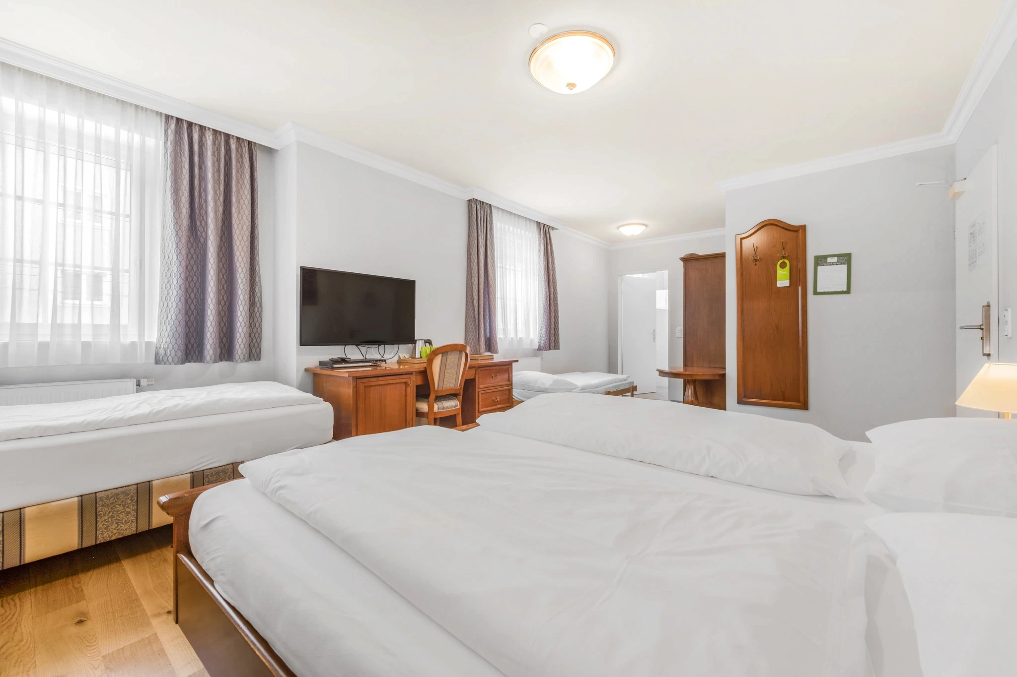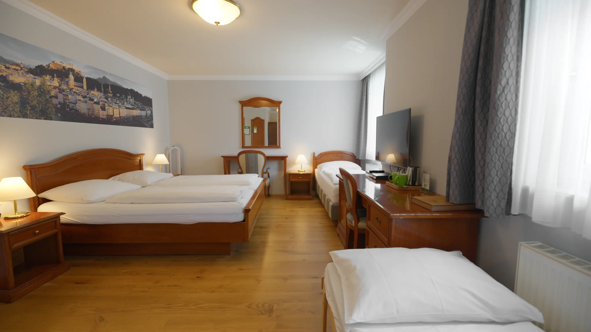 Beliebt, klassisch, sehr wohnlich, straßenseitig mit einem Doppelbett und einem Einzelbett. Ab 14 Uhr können Sie das Zimmer beziehen. Ein Early Check-in ist bei Verfügbarkeit kostenlos möglich. Am Morgen genießen Sie unser reichhaltiges, REGIONALES BIO-FRÜHSTÜCK vom Büffet. Ihr Auto können Sie kostenlos am hoteleigenen Parkplatz abstellen und Ihr Elektroauto mit Ökostrom gegen Aufpreis aufladen. Die Busverbindungen der Linie 1, 10 und 27 bringen Sie zeitnah in die Altstadt, Kongresshaus, Salzburger Hauptbahnhof, Flughafen, Hangar 7 oder Messezentrum.