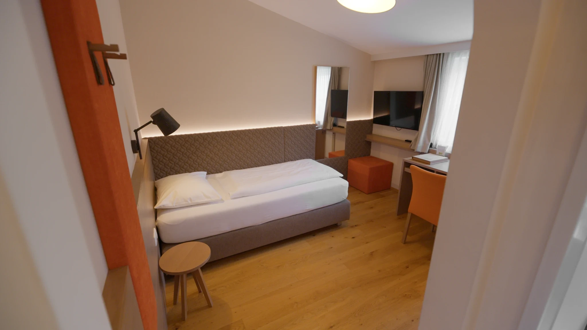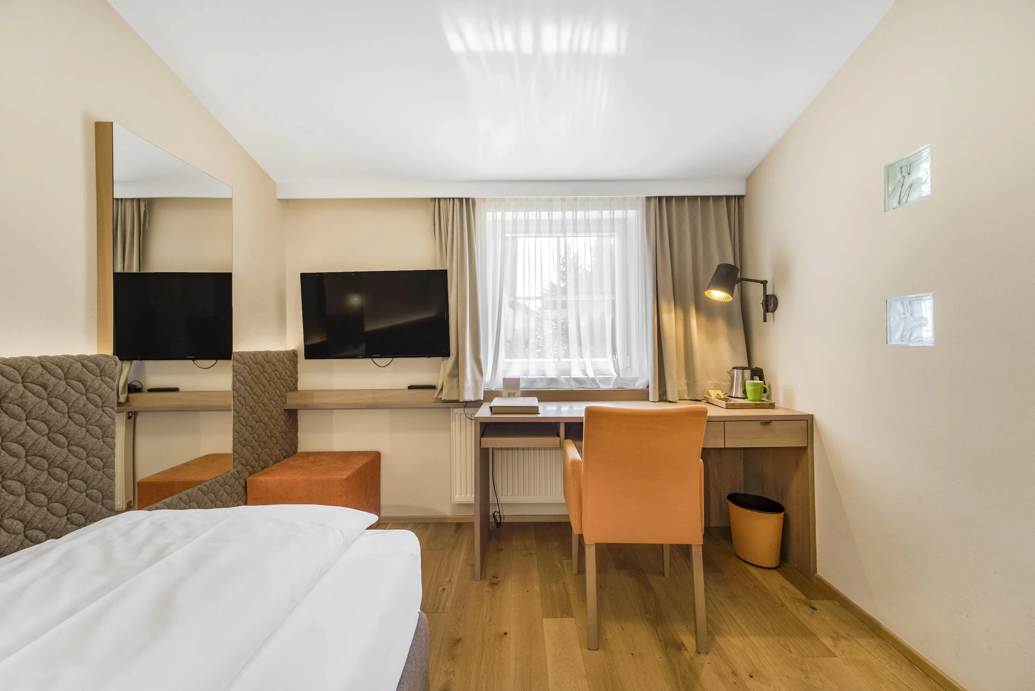 Modern, ruhig, wohnlich, mit großem 1m Einzel-Bett und Blick in den Garten. Ab 14 Uhr können Sie das Zimmer beziehen. Ein Early Check-in ist bei Verfügbarkeit kostenlos möglich. Am Morgen genießen Sie unser reichhaltiges, regionales BIO-FRÜHSTÜCK vom Büffet. Wenn Sie Ihr Zimmer direkt bei uns gebucht haben, können Sie Ihr Auto kostenlos am hoteleigenen Parkplatz abstellen und Ihre Elektroauto gegen Aufpreis mit Ökostrom beladen. Die Busverbindungen der Linie 1, 10 und 27 bringen Sie zeitnah in die Altstadt, Kongresshaus, Salzburger Hauptbahnhof, Flughafen, Hangar 7, Red Bull Stadion, Outletcentre oder Messezentrum.