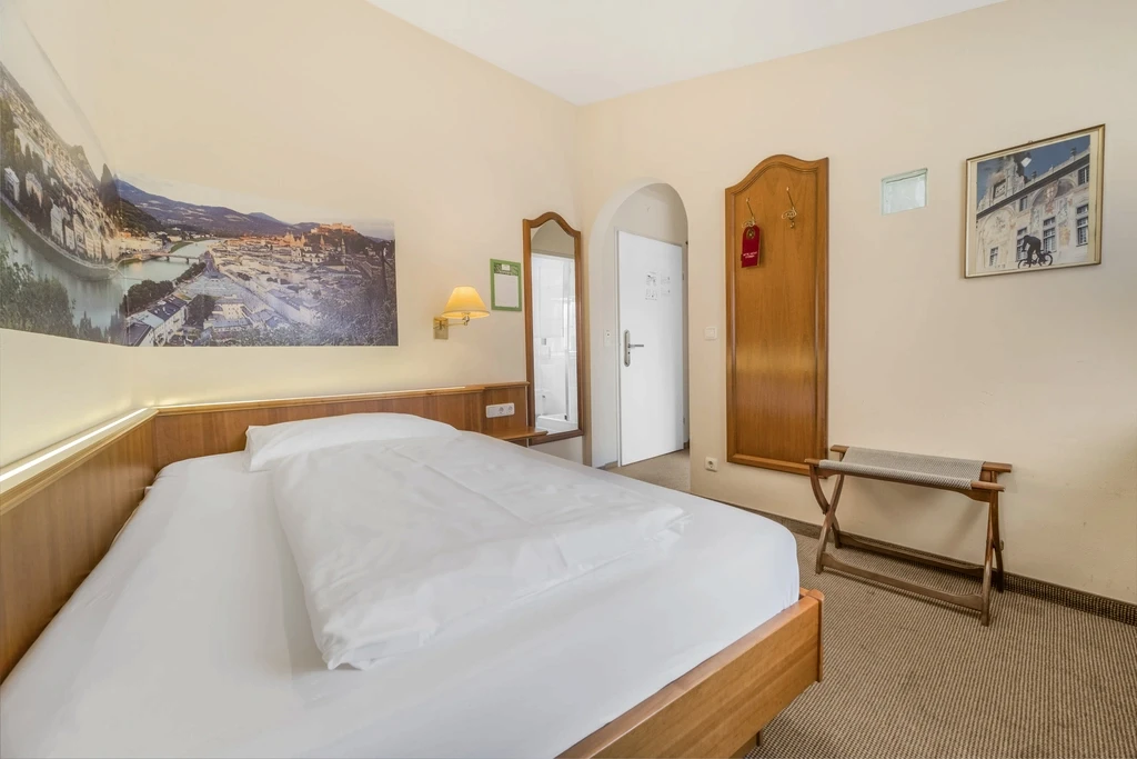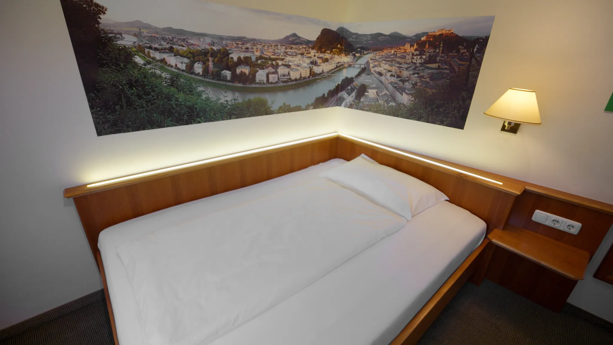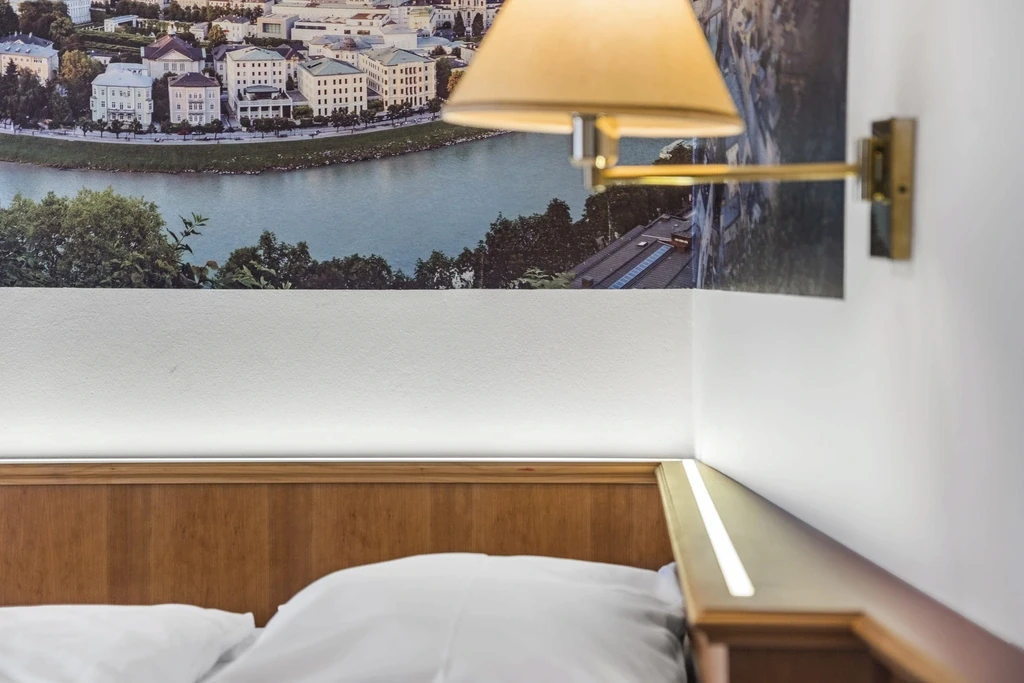 Modern, ruhig, wohnlich, mit großem 1,40 m Bett für 1 bis 2 Personen und Blick in den Garten. Ab 14 Uhr können Sie das Zimmer beziehen. Ein Early Check-in ist bei Verfügbarkeit kostenlos möglich. Am Morgen genießen Sie unser reichhaltiges, regionales BIO-FRÜHSTÜCK vom Büffet. Ihr Auto können Sie kostenlos am hoteleigenen Parkplatz abstellen und Ihr Elektroauto mit Ökostrom gegen Aufpreis aufladen. Die Busverbindungen der Linie 1, 10 und 27 bringen Sie zeitnah in die Altstadt, Kongresshaus, Salzburger Hauptbahnhof, Flughafen, Hangar 7 oder Messezentrum.