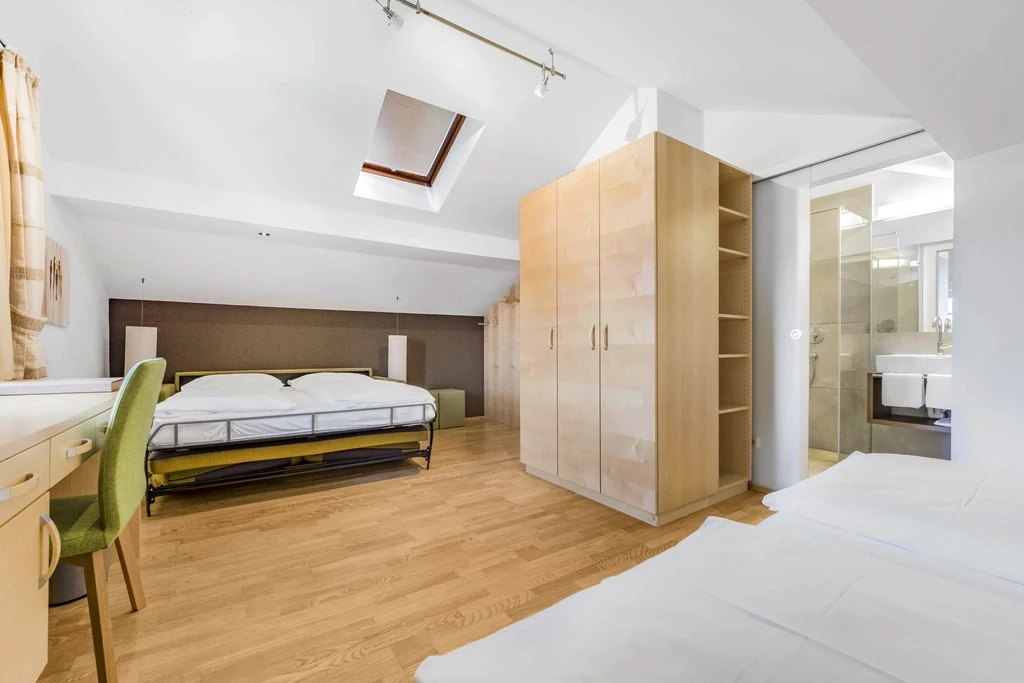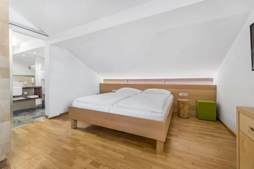 Familienfreundlich, für bis zu 4 Personen geeignet, ruhig, mit einem Doppelbett und einer Doppelschlafcouch mit durchgehender Matratze. Ab 14 Uhr können Sie das Zimmer beziehen. Ein Early Check-in ist bei Verfügbarkeit kostenlos möglich. Am Morgen genießen Sie unser reichhaltiges, REGIONALES BIO-FRÜHSTÜCK vom Büffet. Ihr Auto können Sie kostenlos am hoteleigenen Parkplatz abstellen und Ihr Elektroauto mit Ökostrom gegen Aufpreis aufladen. Die Busverbindungen der Linie 1, 10 und 27 bringen Sie zeitnah in die Altstadt, Kongresshaus, Salzburger Hauptbahnhof, Flughafen, Hangar 7 oder Messezentrum.