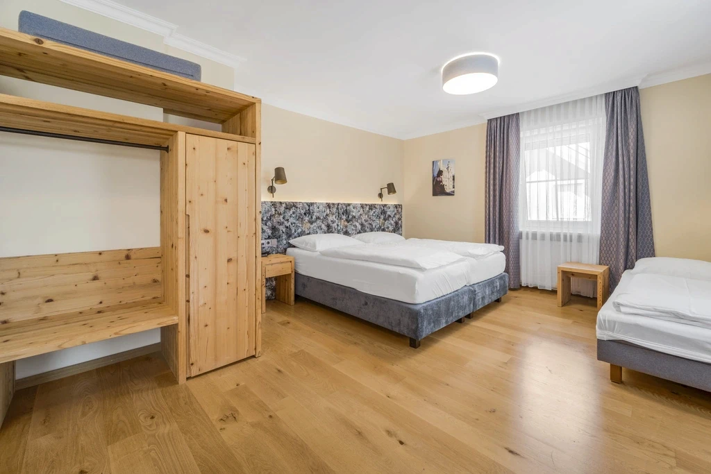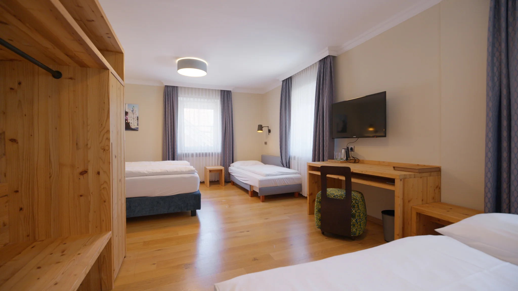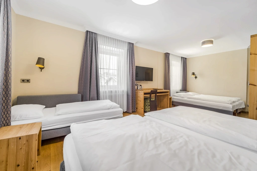 Familienfreundlich, für bis zu 5 Personen geeignet, ruhig, mit einem Doppelbett und einer Doppelschlafcouch mit durchgehender Matratze. Ab 14 Uhr können Sie das Zimmer beziehen. Ein Early Check-in ist bei Verfügbarkeit kostenlos möglich. Am Morgen genießen Sie unser reichhaltiges, REGIONALES BIO-FRÜHSTÜCK vom Büffet. Ihr Auto können Sie kostenlos am hoteleigenen Parkplatz abstellen und Ihr Elektroauto mit Ökostrom gegen Aufpreis aufladen. Die Busverbindungen der Linie 1, 10 und 27 bringen Sie zeitnah in die Altstadt, Kongresshaus, Salzburger Hauptbahnhof, Flughafen, Hangar 7 oder Messezentrum.